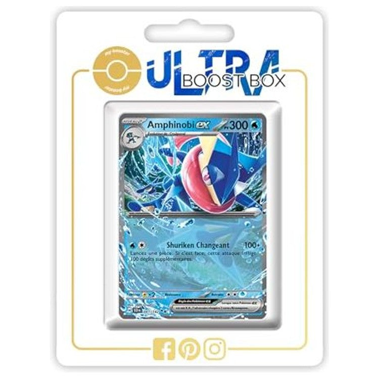Amphinobi ex, le Pokémon Eau et Ténèbres de la sixième génération, dévoile ici un design ultra rare aux effets brillants spectaculaires. Connu pour sa vitesse ninja et son talent Protéen dans les jeux vidéo, ce Pokémon évolué de Croâporal se distingue par des attaques explosives capables de renverser une partie en un tour.