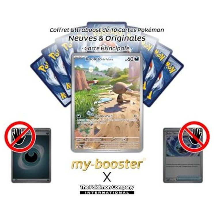 Cette édition met l’accent sur la valeur collection : artwork pleine illustration, rareté secrète et finition premium en font une pièce recherchée pour les fans d’Axoloto de Paldea et des cartes illustrées. Ce coffret Ultraboost / Myboost contient également 9 autres cartes Pokémon variées, toutes officielles et en français, pour enrichir votre classeur.