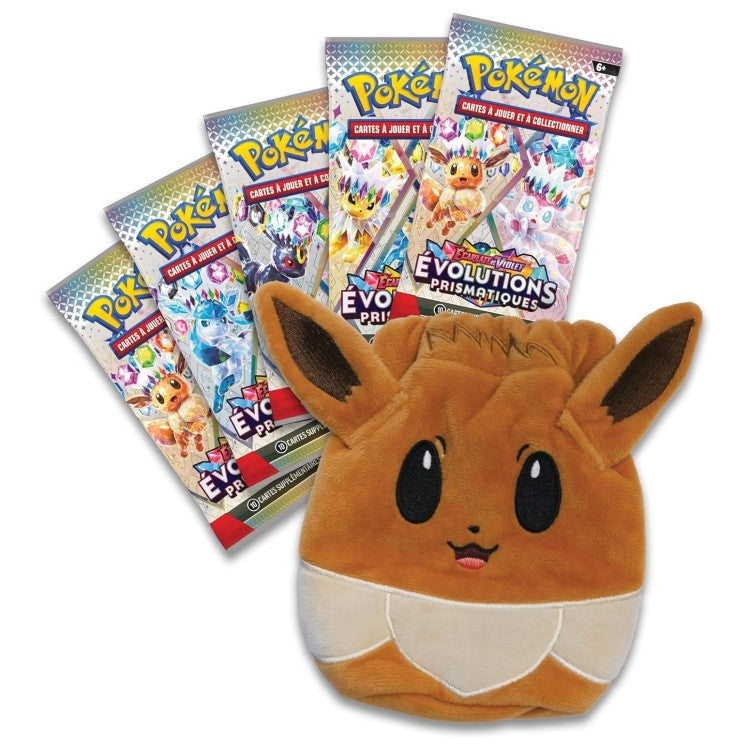 Les longues oreilles d'Évoli donnent un style unique à la pochette et le cordon situé à son extrémité vous permet de garder vos pièces et accessoires en sécurité. Cette collection contient également des boosters de l'extension spéciale Écarlate et Violet - Évolutions Prismatiques, pour vous amuser encore plus !
