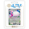 Grodoudou, le Pokémon Ballon de type Fée/Incolore issu de la première génération, revient ici en version ex avec un artwork brillant qui met en avant son corps rebondi et son regard malicieux. Cette édition renforce l’évolution de Rondoudou, connue pour endormir ses adversaires grâce à ses berceuses dévastatrices dans l’univers Pokémon.