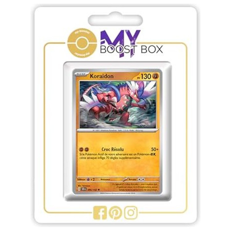 Ce coffret Myboost contient Koraidon 090/142 Reverse issu de l’extension Couronne Stellaire, accompagné de 9 cartes complémentaires sans doublon pour enrichir vos lignes Combat et Dragon. Chaque carte est une édition française authentique sous licence The Pokémon Company, parfaite pour les joueurs stratégiques comme pour les collectionneurs exigeants.
