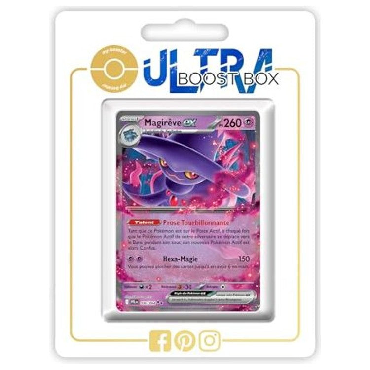 Cette édition ex met l’accent sur la valeur collection et l’impact visuel de son illustration spectrale, idéale pour les fans de Pokémon de type Psy. Ce coffret Ultraboost / Myboost contient Magirêve ex 036/094 accompagnée de 9 autres cartes Pokémon variées, toutes officielles et en français, pour enrichir votre collection avec un assortiment certifié d’origine.