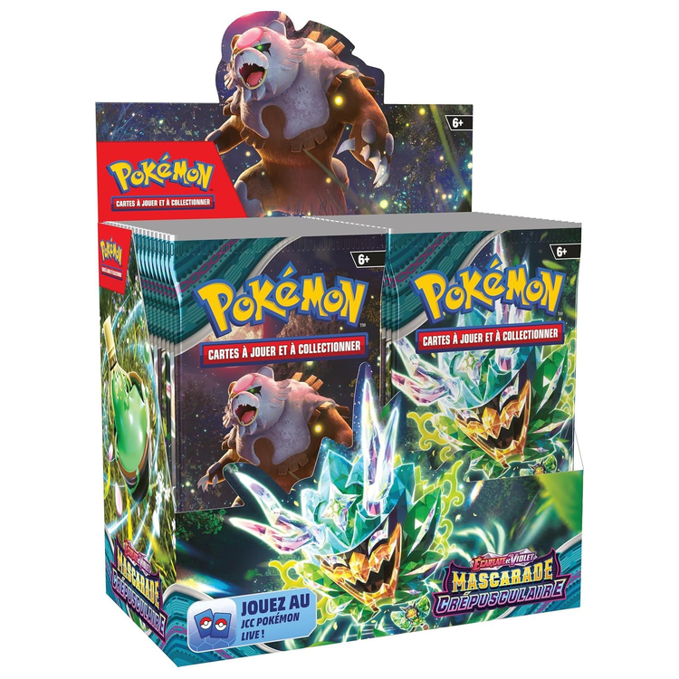 Retrouvez toutes nos cartes, coffrets et accessoires de l'extension Mascarade Crépusculaire. Nous avons aussi toutes les extensions de la série Pokémon Écarlate et Violet sur notre boutique ! ![]()