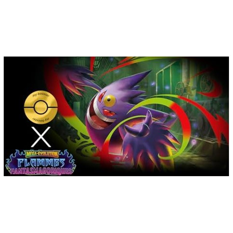 Chaque coffret Myboost inclut cette carte principale Méga-Ectoplasma ex accompagnée de 9 cartes supplémentaires pour enrichir votre deck. Profitez d’une sélection 100 % officielle The Pokémon Company, parfaite pour renforcer vos stratégies ou offrir un cadeau thématique autour de l’extension Flammes Fantasmagoriques.