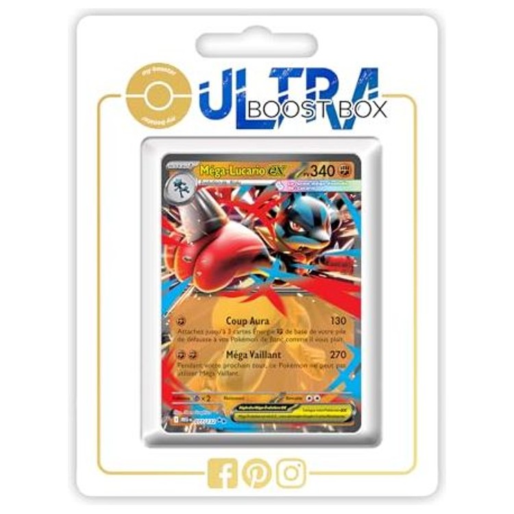 Cette carte Ultra Rare ex présente un artwork dynamique et spectaculaire, très recherché par les collectionneurs en quête de pièces marquantes. Ce pack Myboost regroupe Méga-Lucario ex 077/132 en édition française authentique, accompagné de 9 cartes variées sans doublon pour enrichir votre classeur ou vos decks thématiques Combat.