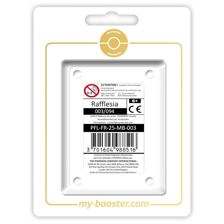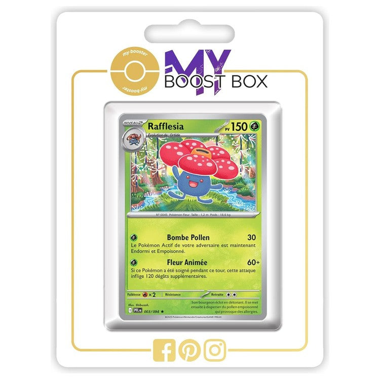 Complétez votre collection Pokémon avec la carte Rafflesia 003/094, proposée en version Holo ou Reverse (aléatoire) dans un coffret exclusif Myboost dédié à l'extension Méga-Évolution 2 : Flammes Fantasmagoriques. Idéale pour les collectionneurs et amateurs du JCC Pokémon, cette carte officielle et neuve met en valeur l’un des Pokémon Plante emblématiques, tout en offrant 9 cartes Pokémon supplémentaires pour enrichir votre set. Un excellent choix pour compléter votre série, renforcer votre collection ou offrir un cadeau Pokémon original.