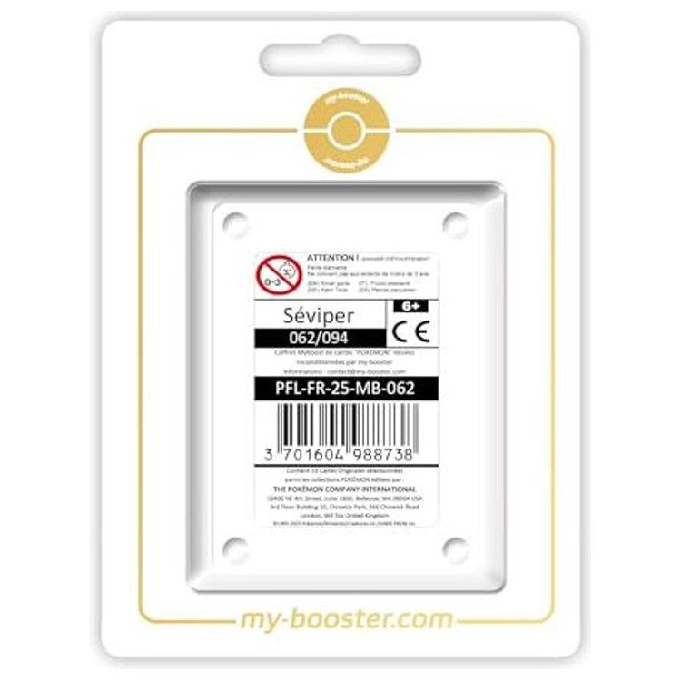 Ce coffret Myboost contient cette carte Séviper 062/094 Reverse de l’extension Flammes Fantasmagoriques, accompagnée de 9 cartes complémentaires sans doublon. Cette édition française authentique sous licence The Pokémon Company s’intègre parfaitement aux decks orientés Poison, et synergise avec d’autres Pokémon capables d’empoisonner ou de ralentir le banc adverse.