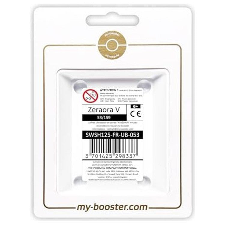 Ce coffret Myboost Zénith Suprême contient Zeraora V 053/159 en édition française authentique, accompagné de 9 cartes complémentaires Pokémon sans doublon. Cet exemplaire sous licence The Pokémon Company est idéal pour enrichir une collection Épée et Bouclier ou renforcer une stratégie Électrik centrée sur la pression offensive.